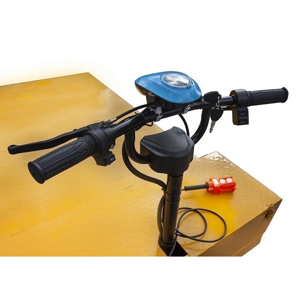 Оснащенная гидравлическим подъемным механизмом платформа способна транспортировать и поднять до 500 кг груза, передвигаться со скоростью до 25 км/час на одной подзарядке. При покупке техники обратите внимание на отсутствие в комплектации батареи. Она докупается дополнительно.