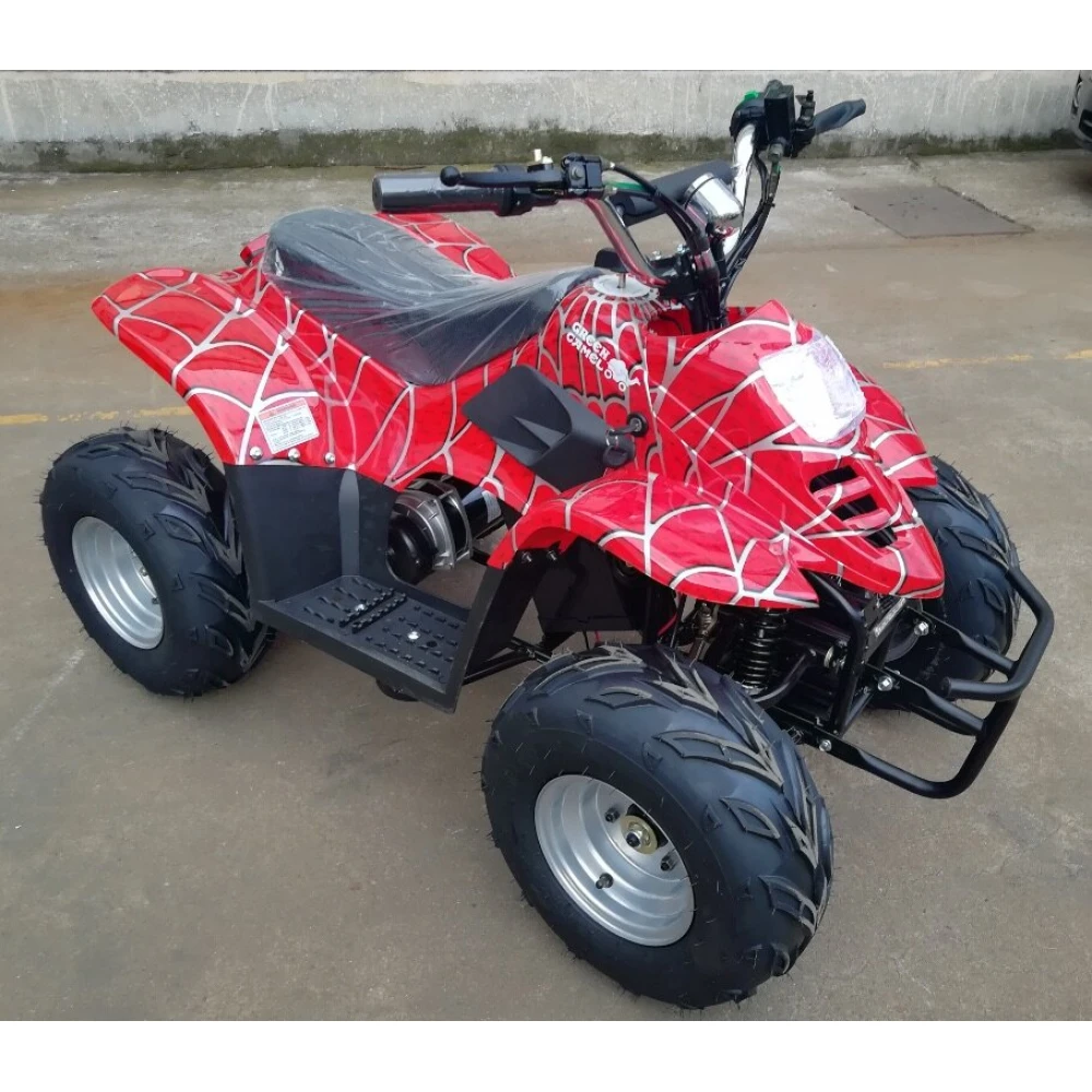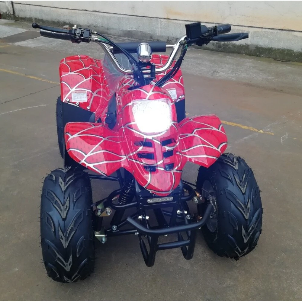Дизайн квадроцикла таков, что сразу привлекает к себе внимание. Обтекаемые формы и яркая покраска делают своё дело. А узор стилизованный под паутину, напоминает о костюме Человека-паука – это не оставит равнодушным вашего ребёнка.