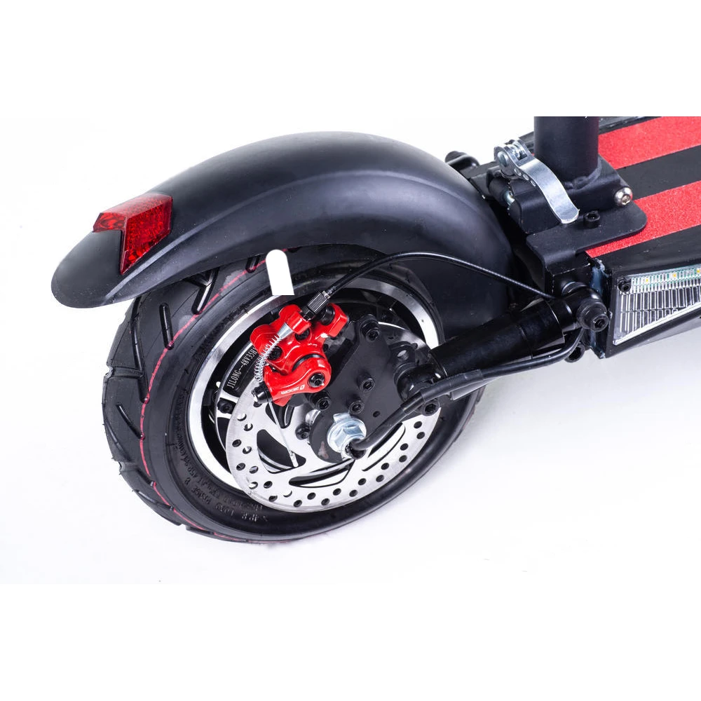Также общий комфорт обеспечивается за счет входящих в комплектацию стояночной подножки, регулируемой по высоте ручки, и системы освещения, состоящей из передней мощной фары и светоотражателей (расположены по всему периметру модели).