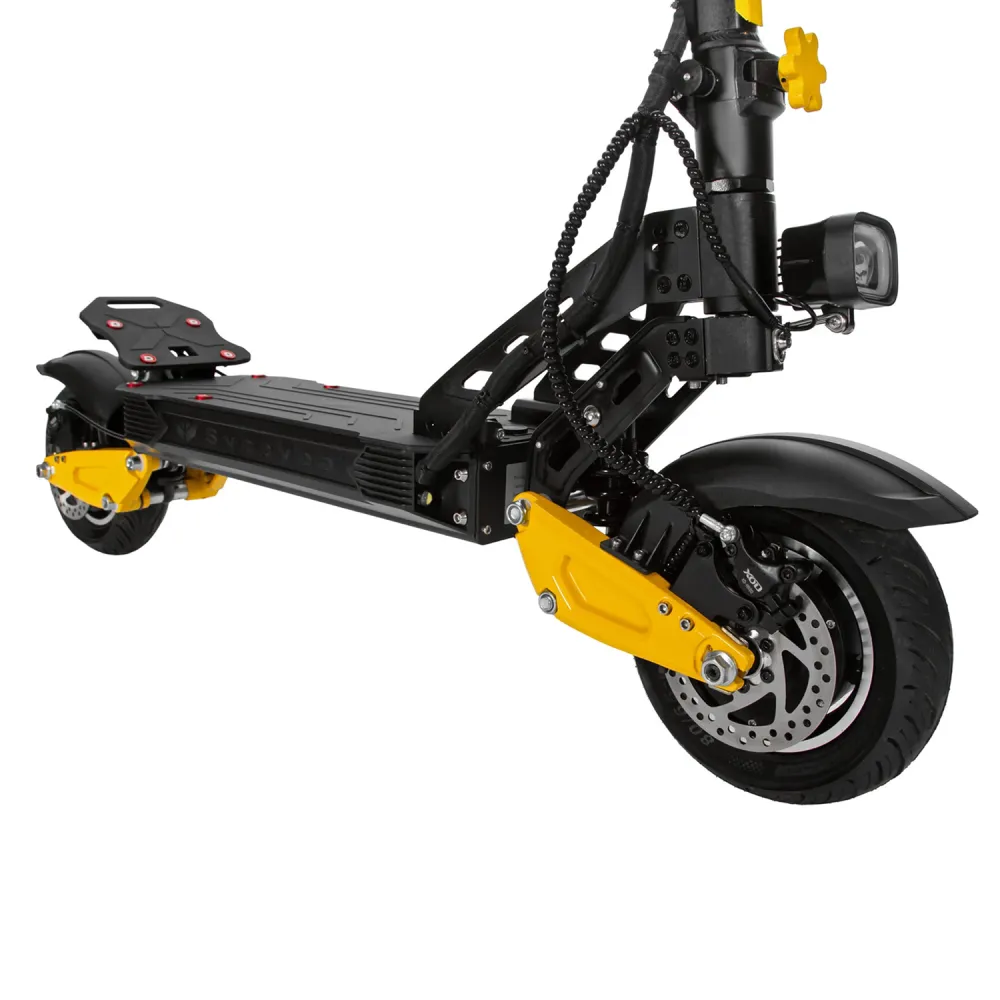 Электросамокат Syccyba M10 Flash Dual предлагает полноприводную систему мощностью 2400 Вт, запас хода до 70 км и скорость до 70 км/ч при весе всего 29 кг, что делает его оптимальным выбором для городских поездок и легкого бездорожья.​​