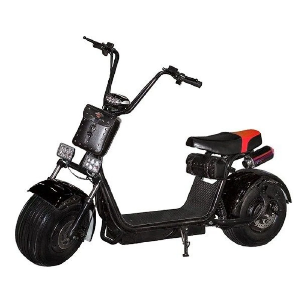 Скутер Citycoco имеет дисковую тормозную систему, Внешнее освещение кроме основной фары дополнено двумя светодиодными квадратными фарами. Основным отличием от многих моделей линейки скутеров Citycoco, является наличие глушителя. Он воспроизводит звук мотора.