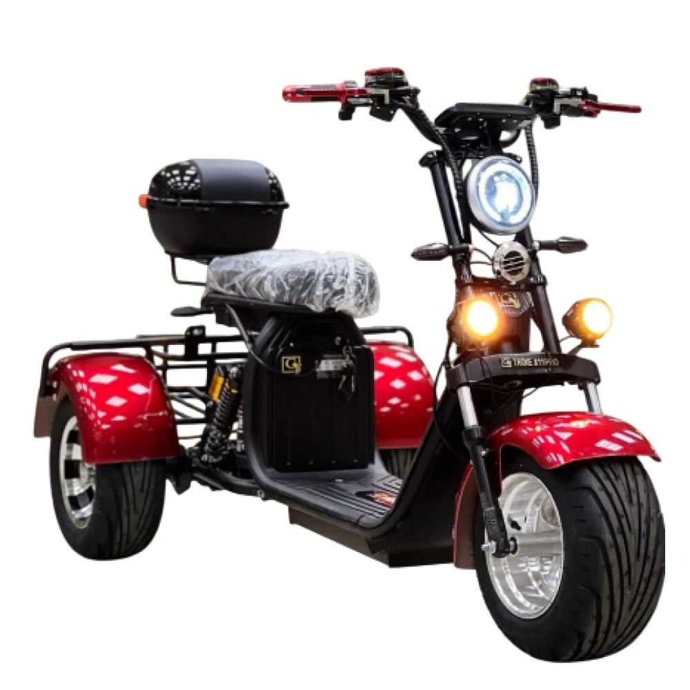Электроскутер трехколесный Citycoco GT X11 Trike красного цвета - это уникальный и стильный способ передвижения, который сочетает в себе высокую мощность и комфорт. Он является инновационным транспортным средством для передвижения по улицам города и позволяет наслаждаться абсолютной свободой безопасного и экологически чистого передвижения.
