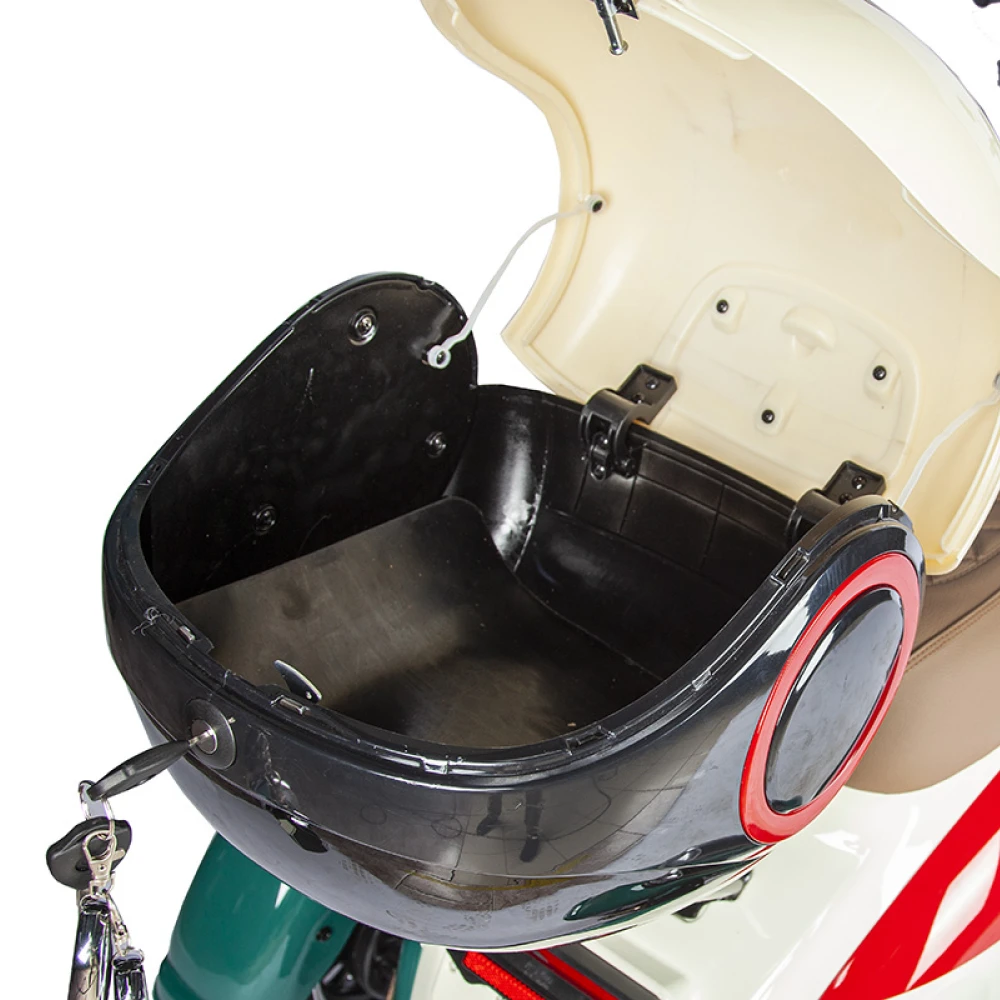 Скорость достигает до 25 км/ч, а заряд позволяет проехать тридцадь километров на одном заряде аккумулятора. Он легко перевозит грузы до 120 кг, что делает его превосходным вариантом для коммерческого использования.