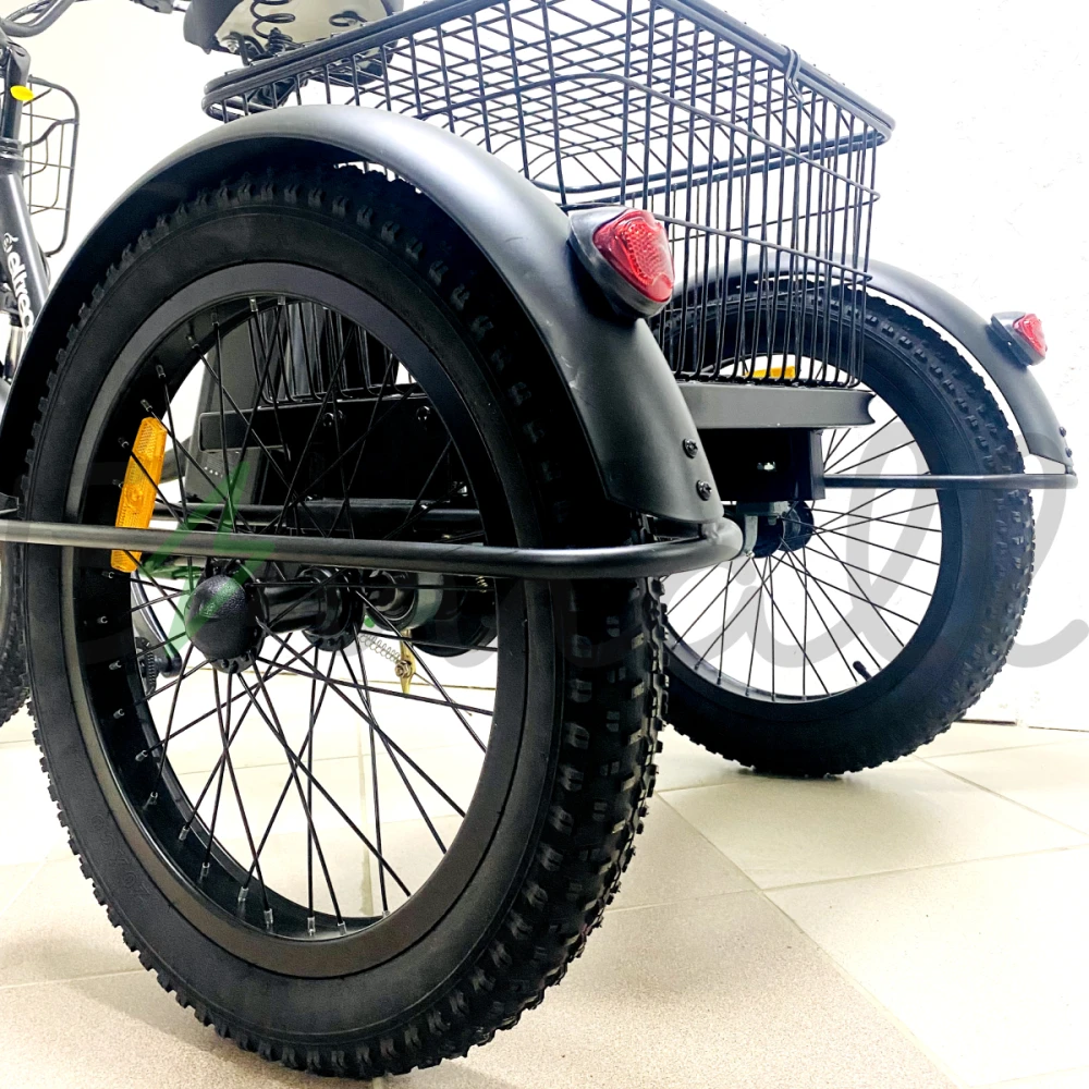 ТРИЦИКЛ ELTRECO PORTER FAT 500 имеет устойчивые колеса диаметром 20 дюймов, достигает скорости в 35 км/час, выдерживает нагрузку в 110 кг.