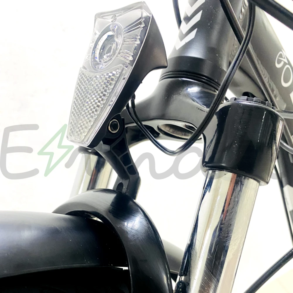 Электровелосипед массой 23 кг выдерживает нагрузку до 120 кг. Прочная алюминиевая рама надежная в применении, не деформируется при максимальных весах. АКБ с большим запасом энергии – съемное, может заряжаться на байке и без него. Количество механических скоростей – 7, количество электрических скоростей – 5. Байк оснащен дисковой передней и задней механической системой. Безопасный в эксплуатации при соблюдении требований производителя и правил безопасности.