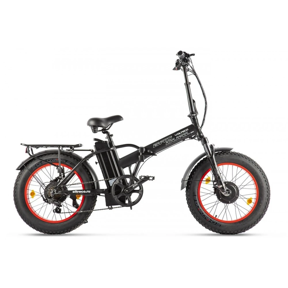 Электровелосипед VOLTECO BAD DUAL NEW необычная новая модель черно-красного цвета, предназначена для любителей экстремальной езды при использовании вне дорог благодаря широкими и удобными в своем роде 20 дюймовыми колесами. Предусмотрено 7 режимов скоростей для правильного подбора скорости. Настоящий хит сезона, пользуется очень большим спросом. Укомплектован дисковыми передними и задними тормозами, четко и мгновенно реагируют на действие водителя. Мощность электродвигателей 2*500W на полном приводе показывает себя очень выносливым, гарантирует высокую проходимость и маневренность.