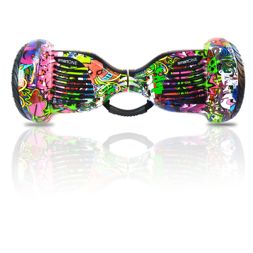 Гироскутер SmartONE работает на электротяге, аккумулятор имеет емкость 4.4 А*ч. Входящим в комплект зарядным устройством зарядить его до 100 процентов можно за 2-3 часа. Гироскутер имеет стильный дизайн, яркую расцветку.