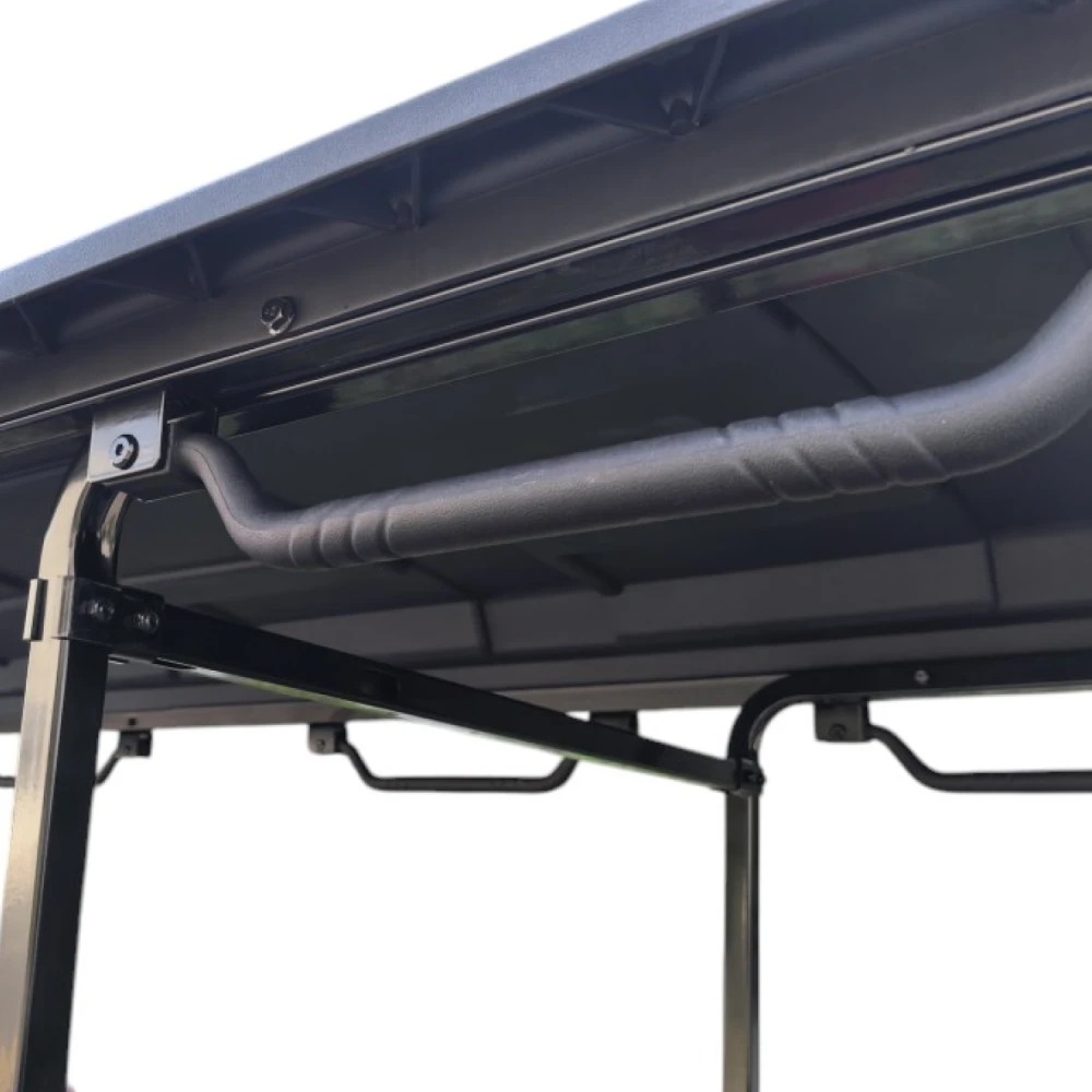 Cкладывающееся лобовое стекло, Светодиодные фары и поворотники. Зеркала заднего вида. Цветной LED дисплей. Бардачки на ключах, порт USB, ремни безопасности. Встроенное зарядное устройство. Заднее сидение раскладывается в грузовой отсек.