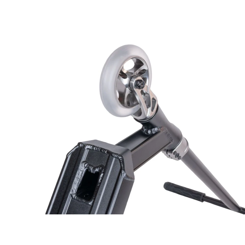 Колесная часть имеет размеры 110*24мм, покрыта мало стираемым полиуретаном. Грипсы – прорезиненные, нескользящие, гарантирует отличный отскок и исполнение других трюков гарантировано каждому райдеру. Дека – широкая, покрыта антискользящим материалом. Тормозная система – задняя ножная. Нескользящая и нестираемая дека гарантирует безопасность райдера при выполнении экстремальных трюков и маневрировании.