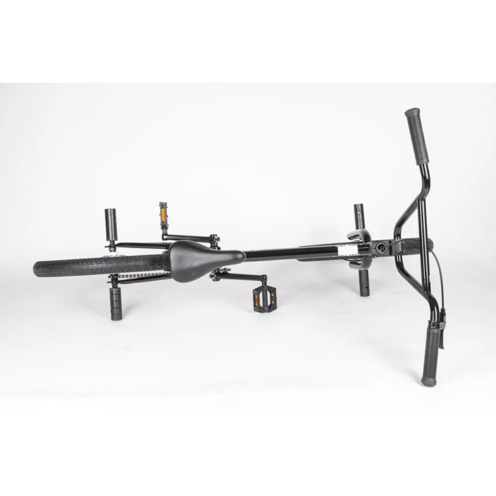 Надежная колесная часть на двойных алюминиевых ободах с накатистой резиной, брендовые покрышки, TT стальной 700 мм руль в сочетании с 4 пегами позволяют ставить трюки по рейлам и делать более серьезные манипуляции.